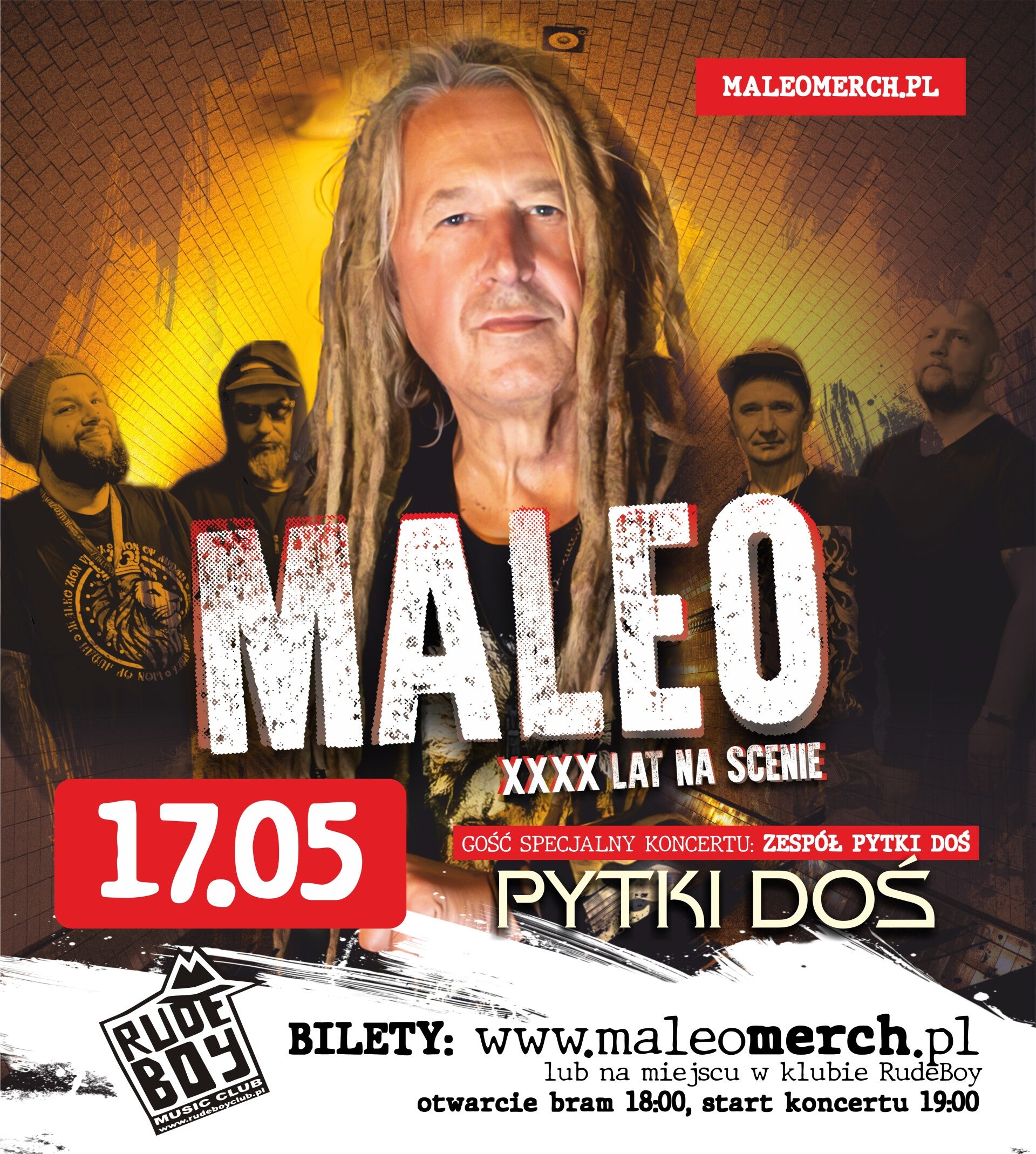 Przed nami wyjątkowa trasa koncertowa Maleo, która będzie muzycznym podsumowaniem 40 lat obecności artysty na scenie. To zakończenie jubileuszowego cyklu obchodów, przygotowane z rozmachem i sercem. W repertuarze usłyszycie utwory zespołów Izrael, Houk, Moskwa, Kultura oraz Maleo Reggae Rockers – klasyki, które kształtowały całe pokolenia, i które na żywo brzmią jeszcze mocniej.